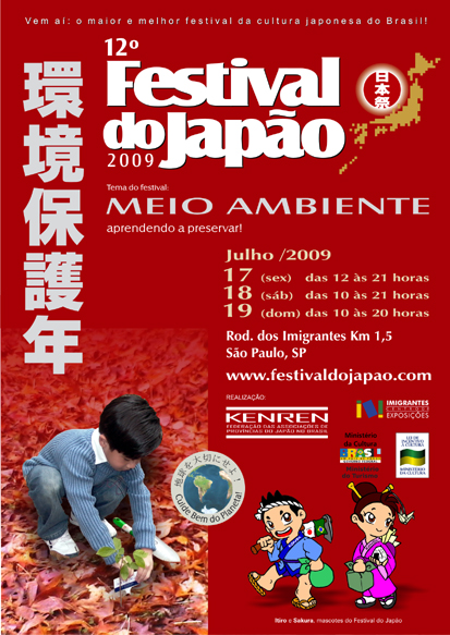 O Festival do Japão, um dos maiores eventos sobre cultura japonesa no mundo, ocorre anualmente em São Paulo e este ano será a sua décima segunda edição. O evento é organizado desde 1998 pelo Kenren (Federação das Associações de Províncias do Japão no Brasil) e apresenta shows musicais, atrações culturais, danças típicas, culinária, exposições e atividades para as crianças.