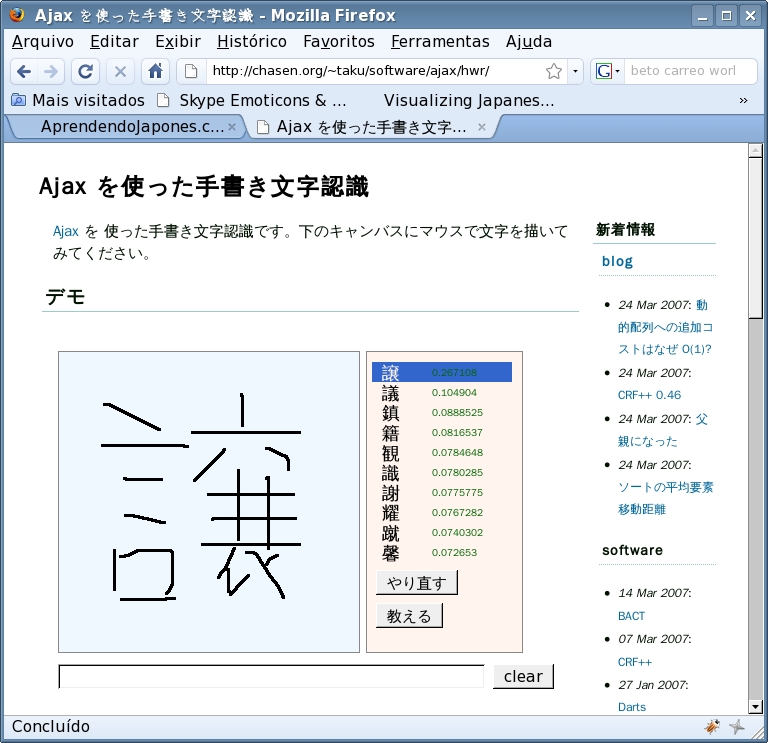 Kanji - Reconhecimento de escrita a mão + rikaichan